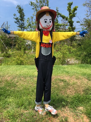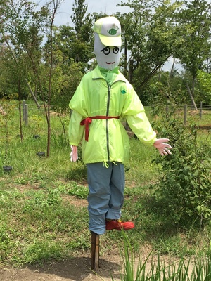 げんき里山の田んぼの苗もすくすく育ち、本日、小松市のあおば保育園の年長児とOBボランティアとでかかしの設置を行いました。