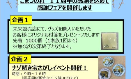 - 毎週日・月曜日・第5土曜日※祝日についてはイベントカレンダーをご確認ください。