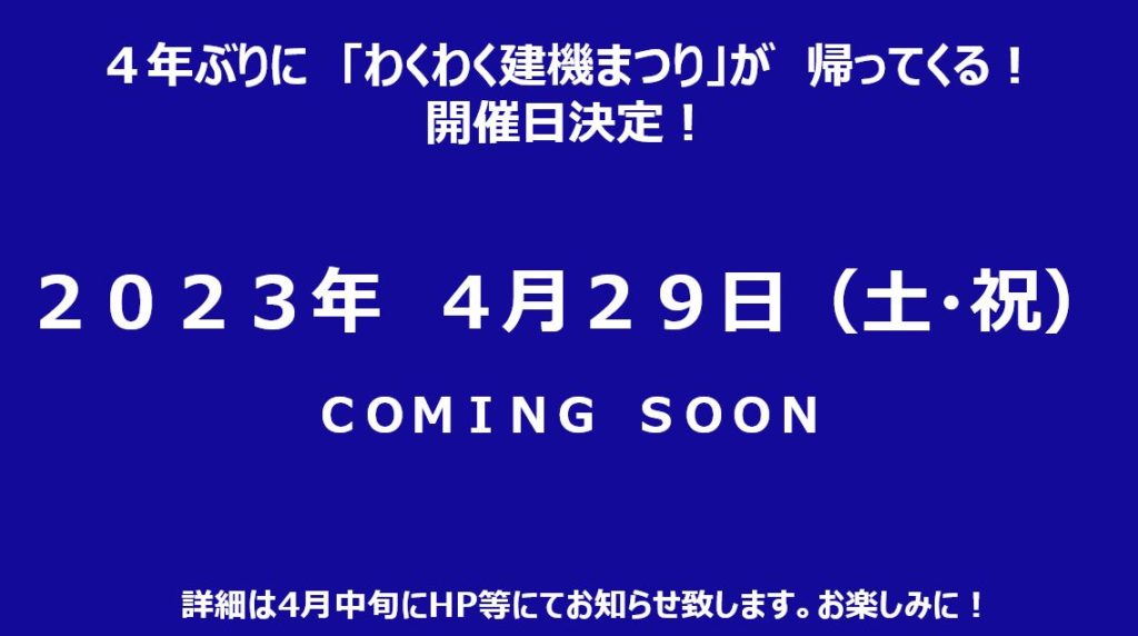 4年ぶりのわくわく建機まつりを開催します。