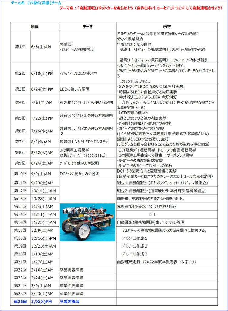 2023年6月から2024年3月までの期間、「自主的に課題を見つけて解決する力を養うこと」をねらいとして、約25回に分けて一つのテーマに挑戦する『第8期わくわくコマツ塾』を開講いたします。