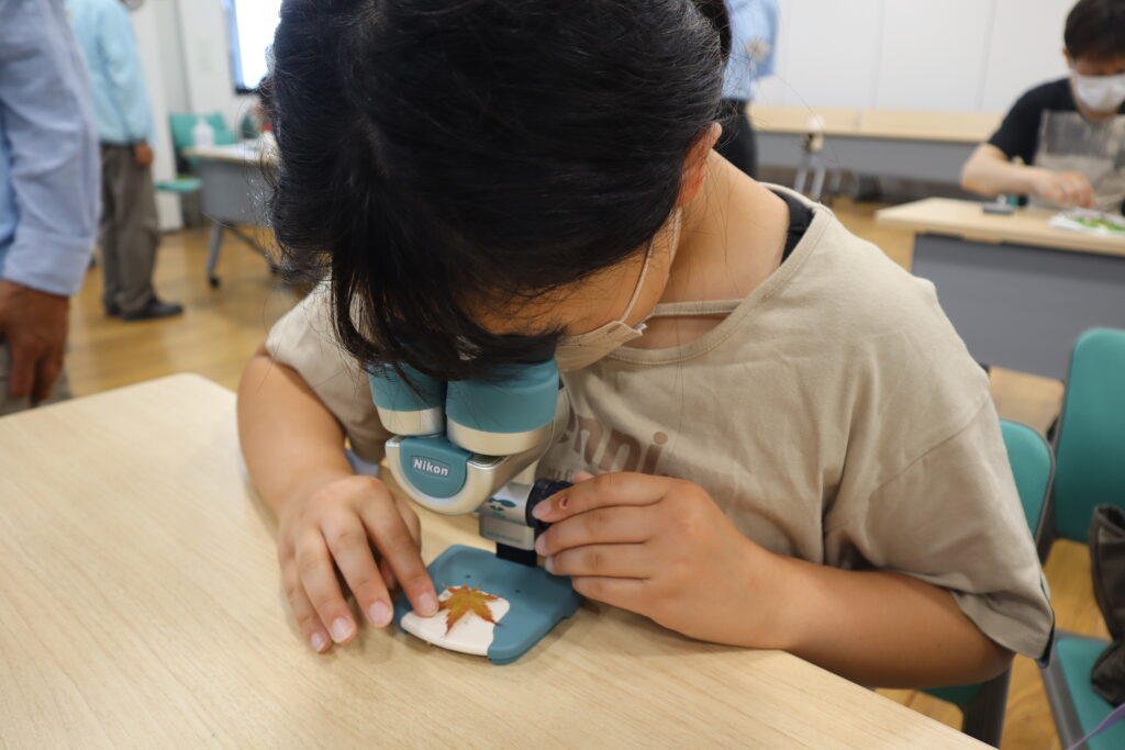 葉っぱを顕微鏡で観察したり、葉っぱを使って工作体験をします。