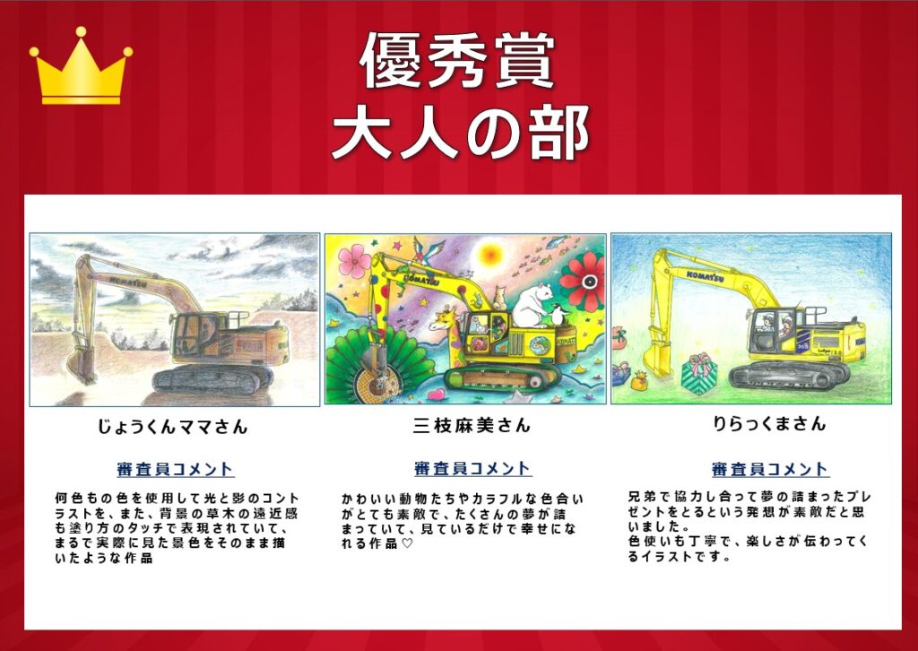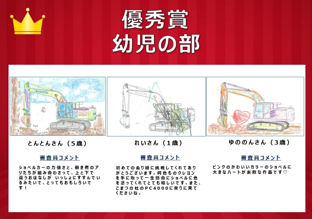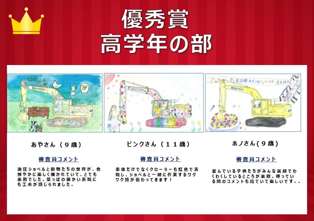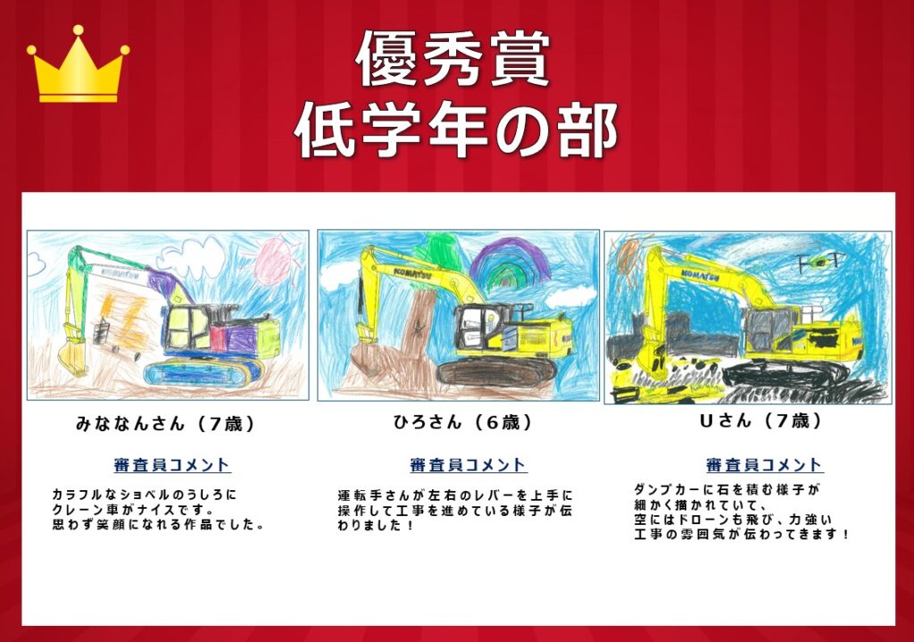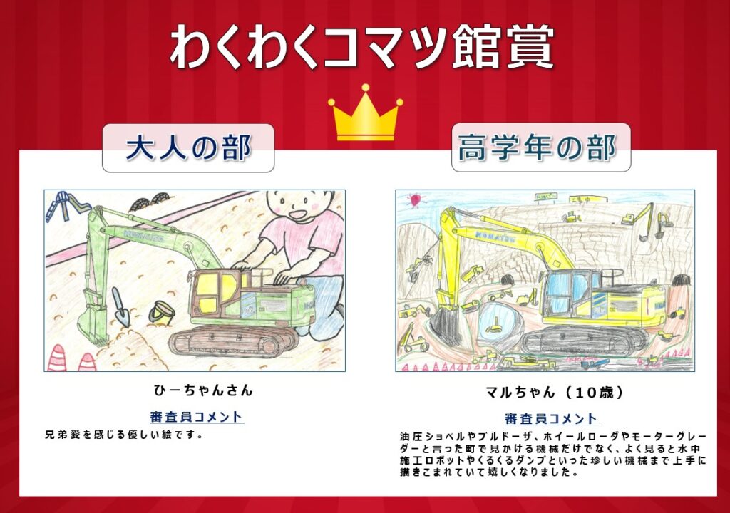 受賞者の作品は、「わくわくコマツキッズ館」に展示致しますので、ぜひご覧ください。