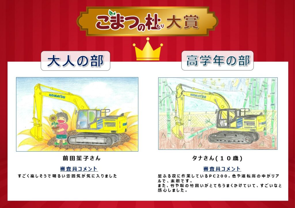 厳選な審査の結果、「こまつの杜大賞」「わくわくコマツ館賞」「優秀賞」の受賞者が決定しましたので、