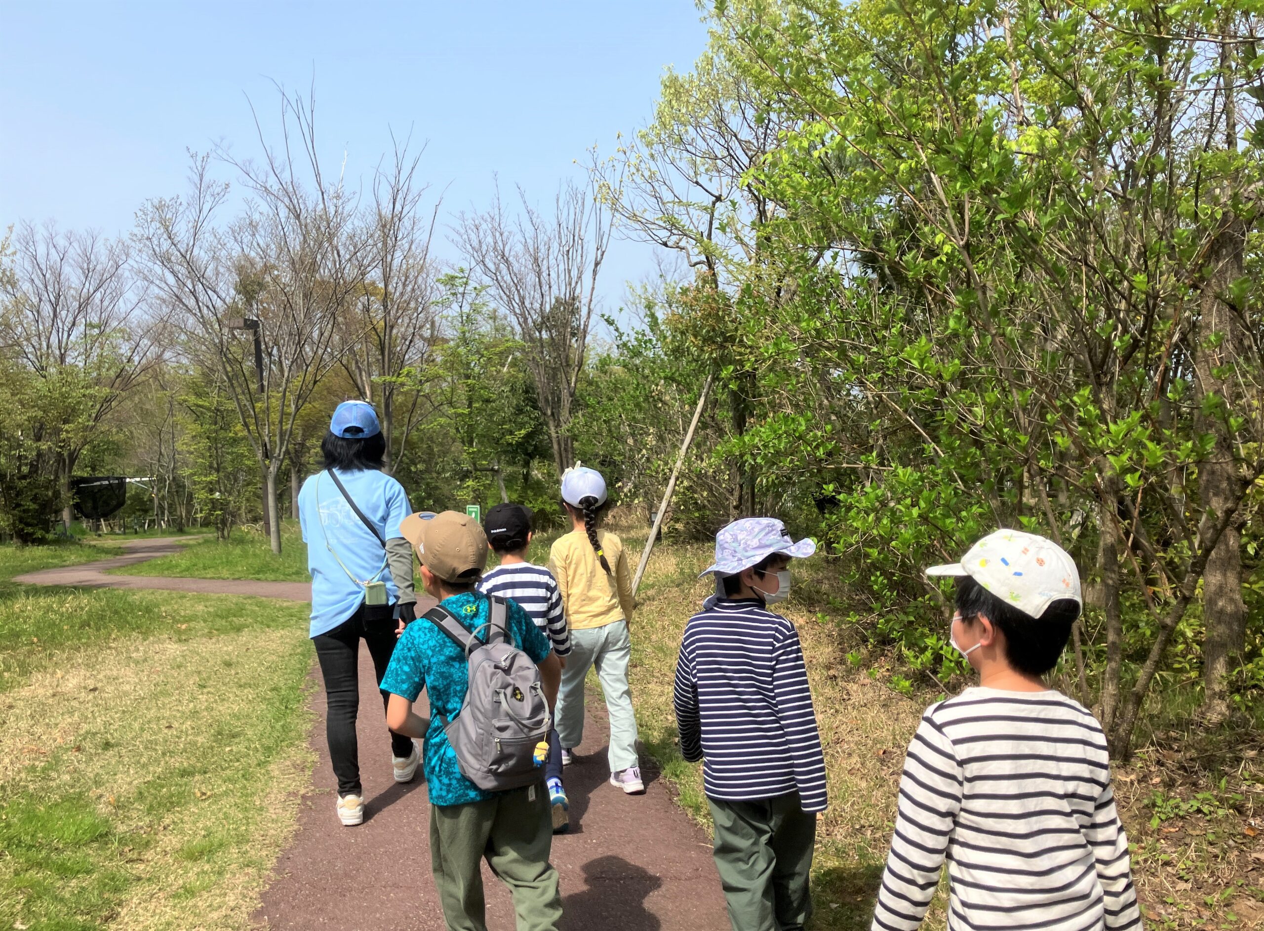 蝶が観察できるげんき里山の場所へと皆で散策しながら向かいます。