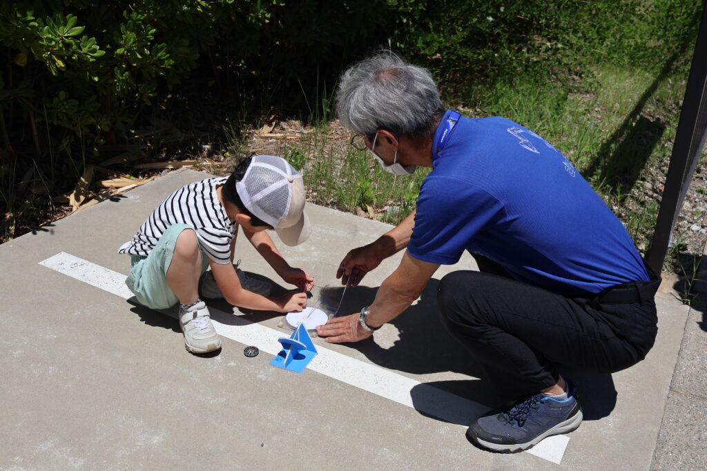 そして、実際に屋外に出て自分で作った日時計を使って、現在の時刻を知る体験をしました。