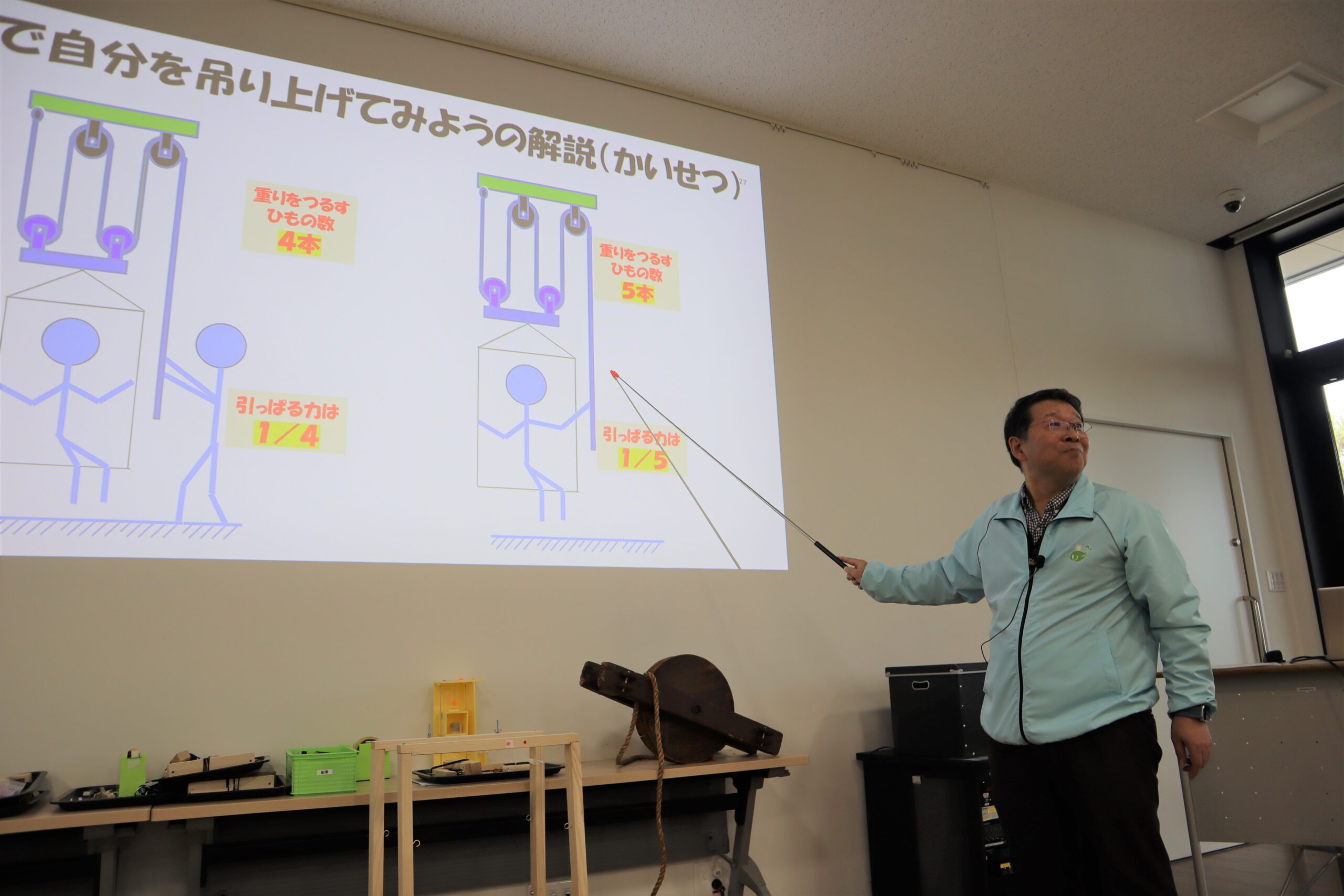 最後に滑車を使って、自分で自分を持ち上げる実験をして楽しみました♬