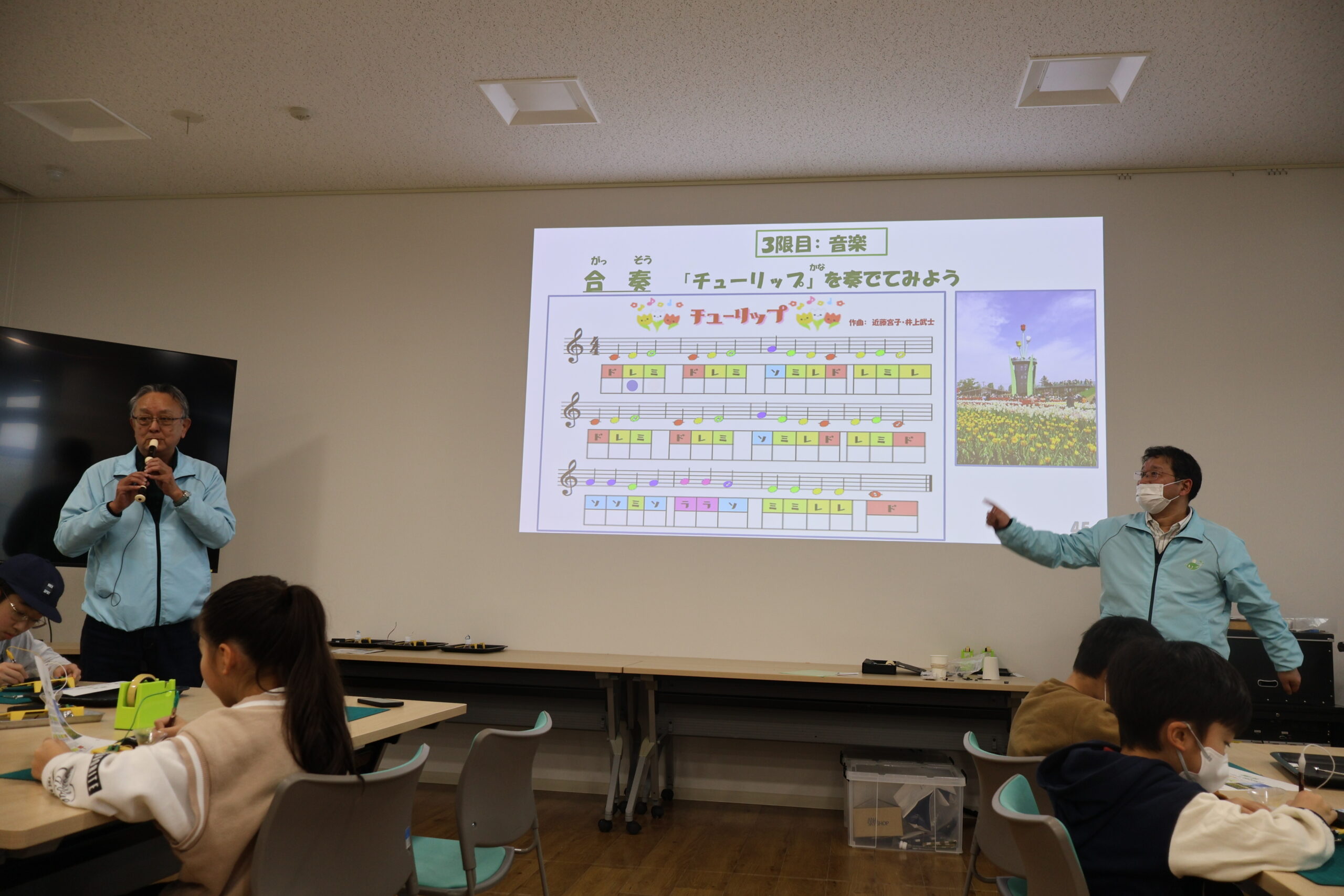 ◆越田講師のリコーダーに合わせて、みんなでチューリップを演奏しました~♬
