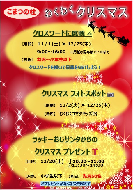 現在、こまつの杜では、わくわくクリスマスのイベント開催中です‼