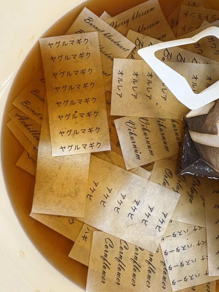 お持ち帰りいただくのは押し花を貼った葉書(和紙)のみですが