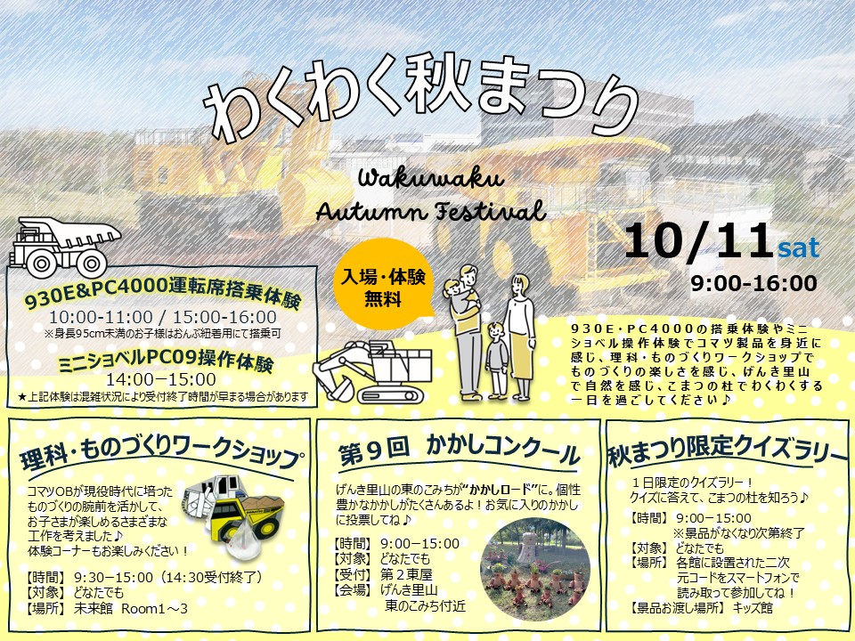 今日は、来月11日土曜日に開催する「わくわく秋まつり」イベントについてお知らせします。