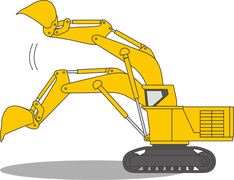役割 大きなバケットで土を掘り起こし、土の中から出てきた鉱物や土砂をダンプトラックに積み込むよ。