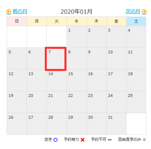 例)2020年3月5日来園希望の場合 → 2020年1月7日(火)予約受付開始